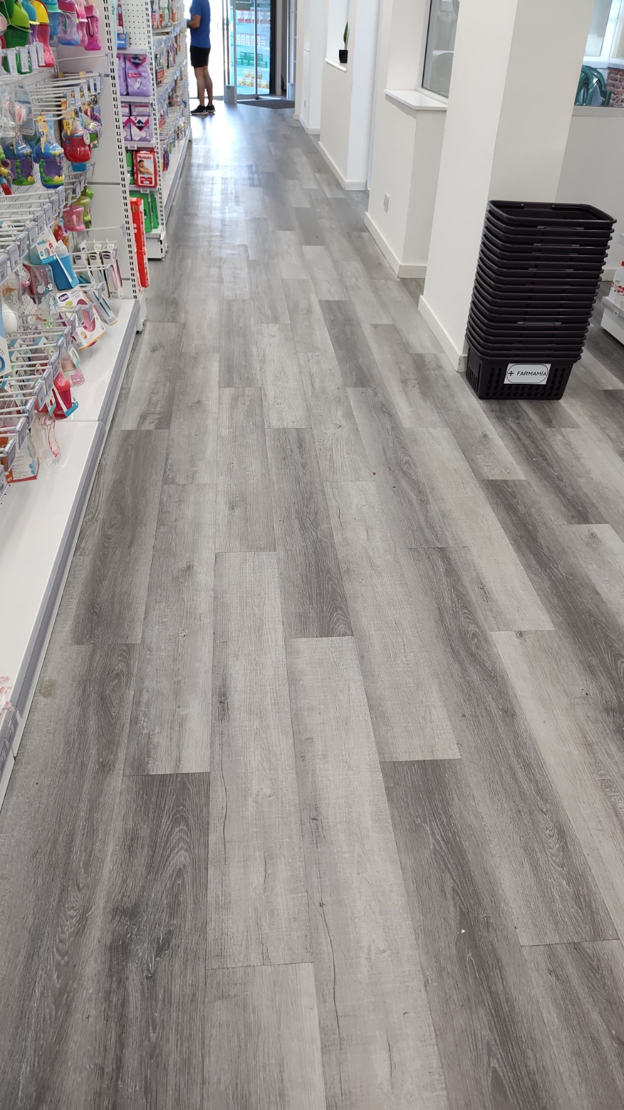 Los pisos vinílicos Dryback son los pisos que se pegan sobre la superficie. Son resistentes al agua, necesitan una superficie lisa y plana para ser colocados. Modelo Silver Oak, capa de uso de alto tránsito 0.5 mm.